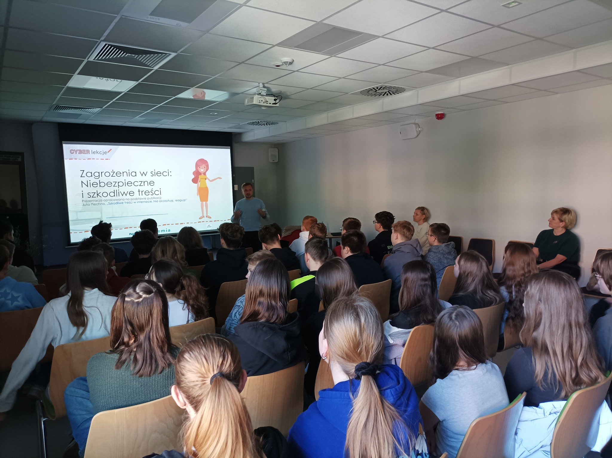 Rozpoczęliśmy od ważnej lekcji o zagrożeniach w sieci. Dominik Sołowiej z Książnicy Podlaskiej poprowadził spotkanie edukacyjne dla uczniów klas 7 SP nr 2, podczas którego poruszano tematy dezinformacji, AI i bezpieczeństwa w mediach społecznościowych.