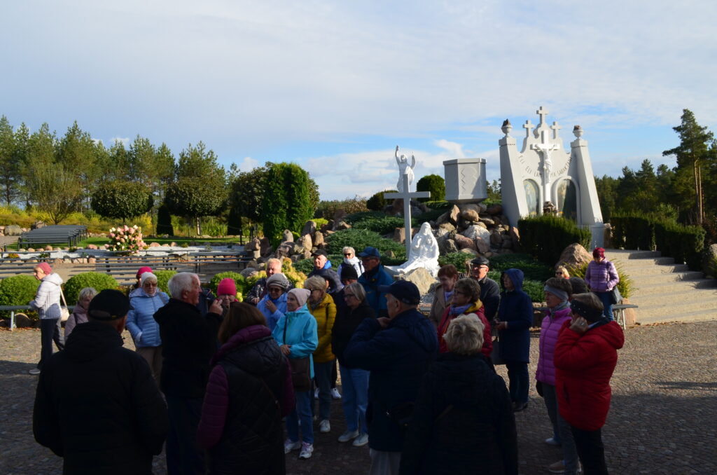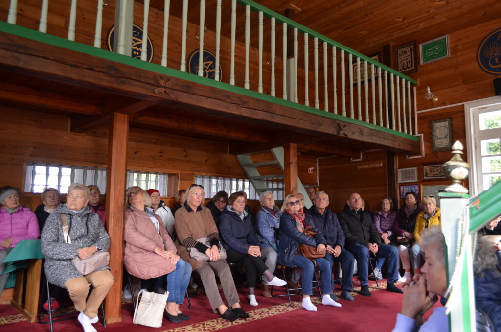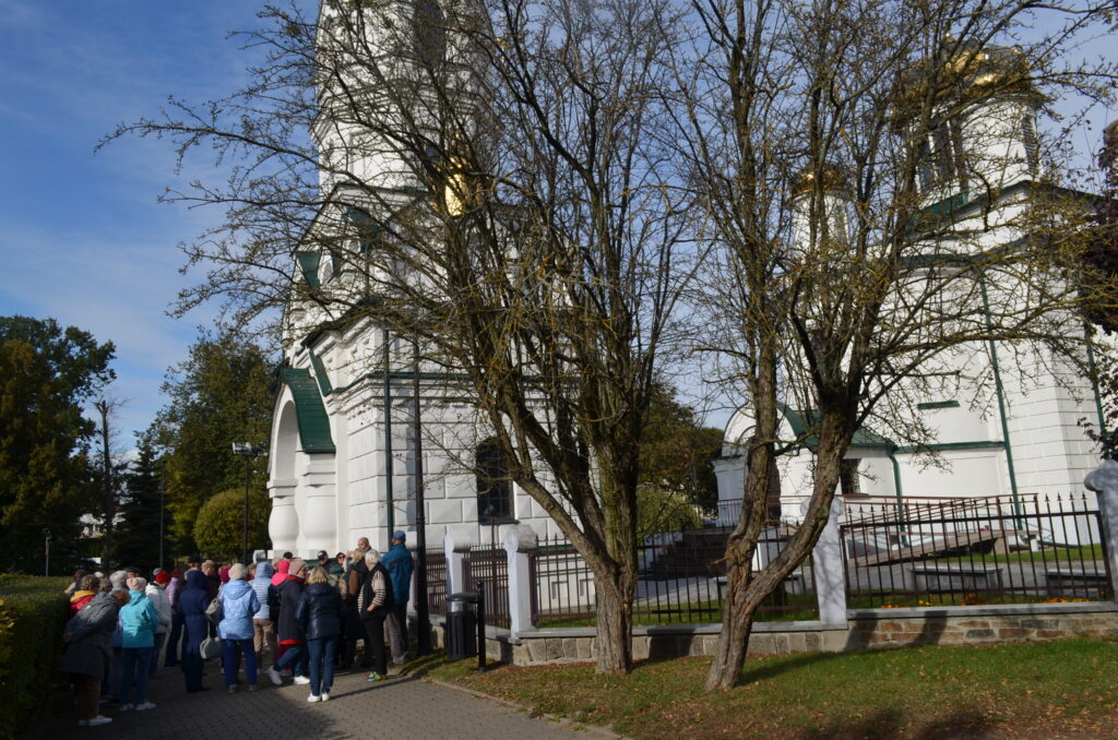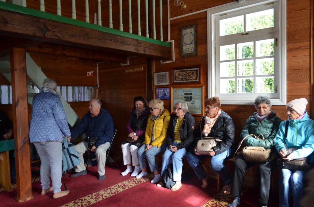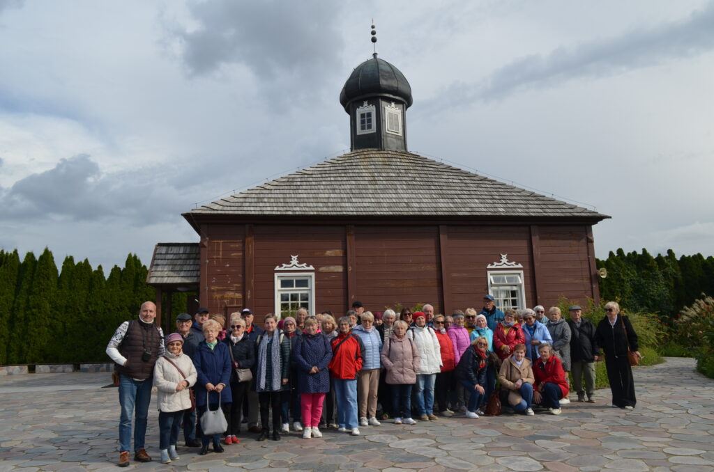 Dnia 2 października w ramach projektu „Co słychać u naszych sąsiadów” uczestniczyliśmy w wycieczce po naszym Podlasiu. Zaczęliśmy od Kopnej Góry, gdzie w 2023 r. w pobliżu Arboretum została otwarta zagroda pokazowa żubrów z infrastrukturą turystyczną (strefy piknikowe, ścieżki edukacyjne, izba edukacyjna i parkingi). Następnie odwiedziliśmy wieś Bohoniki. Zamieszkiwana ona jest przez mniejszość tatarską z nadania dóbr ziemskich przez króla Jana III Sobieskiego. We wsi znajduje się meczet oraz mizar – cmentarz muzułmański (objęte ochroną konserwatorską). W Bohonikach zjedliśmy specjały tatarskie: kołduny w rosole i pieróg z mięsem. Byliśmy w Sokółce, gdzie w kościele pw. św. Antoniego Padewskiego był cud eucharystyczny, który wydarzył się 12.X.2008 r. Obejrzeliśmy prawosławną cerkiew pw. św. Aleksandra Newskiego. Ostatnią wizytę złożyliśmy w Świętej Wodzie w Wasilkowie. Zespół sanktuaryjny składa się z kościoła (kaplica), groty, wzgórza krzyży, cudownego źródełka, ołtarza polowego oraz kaplic Dróżek Siedmiu Boleści Matki Bożej, rozmieszczonych na Błoniach Jana Pawła II.