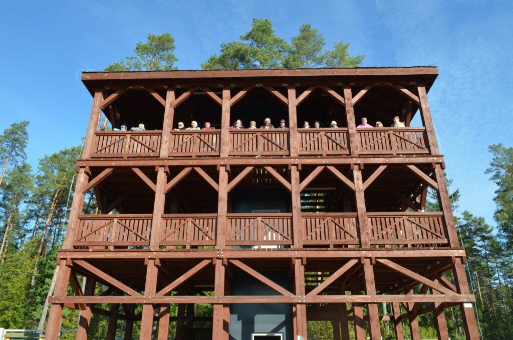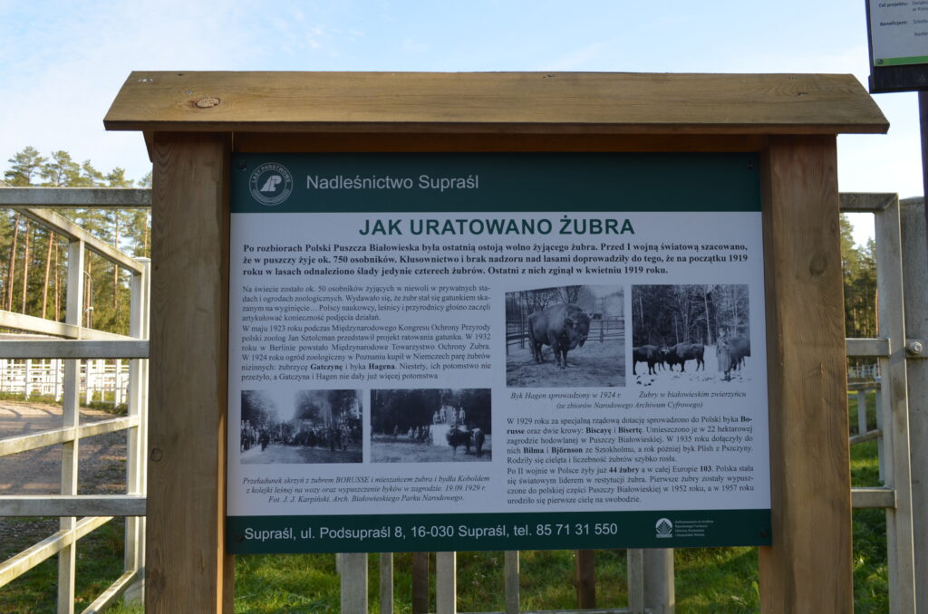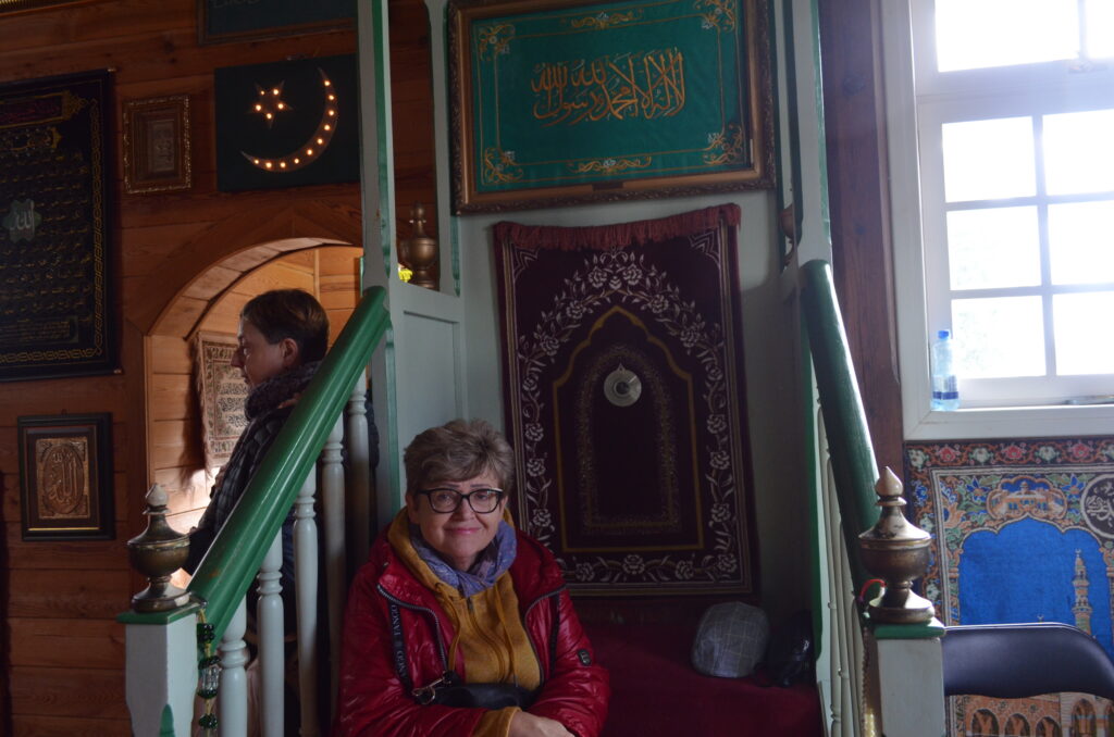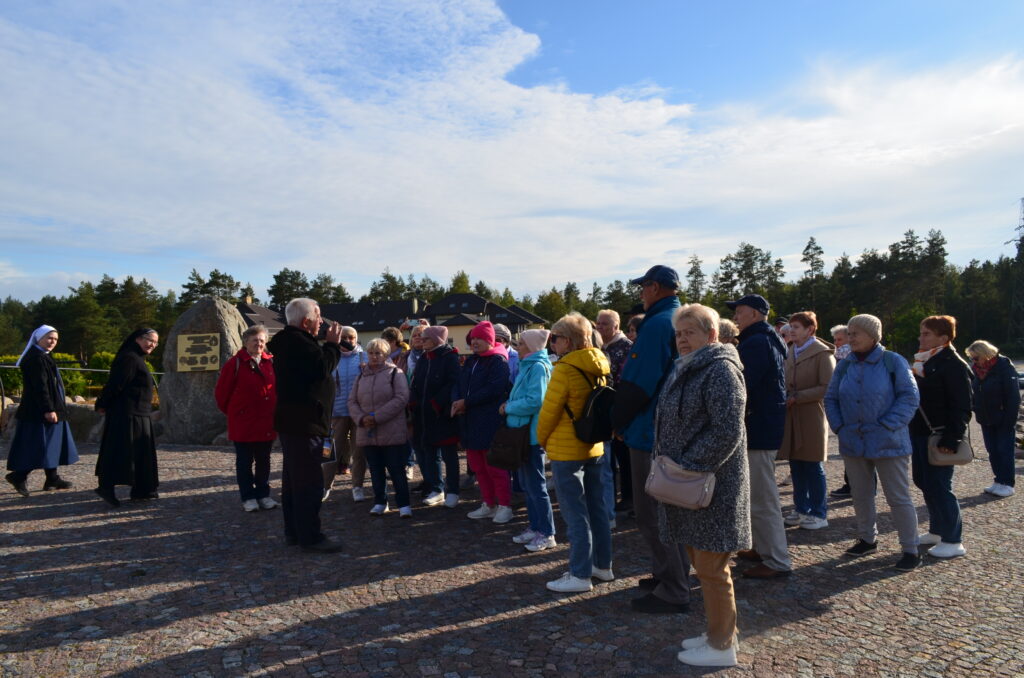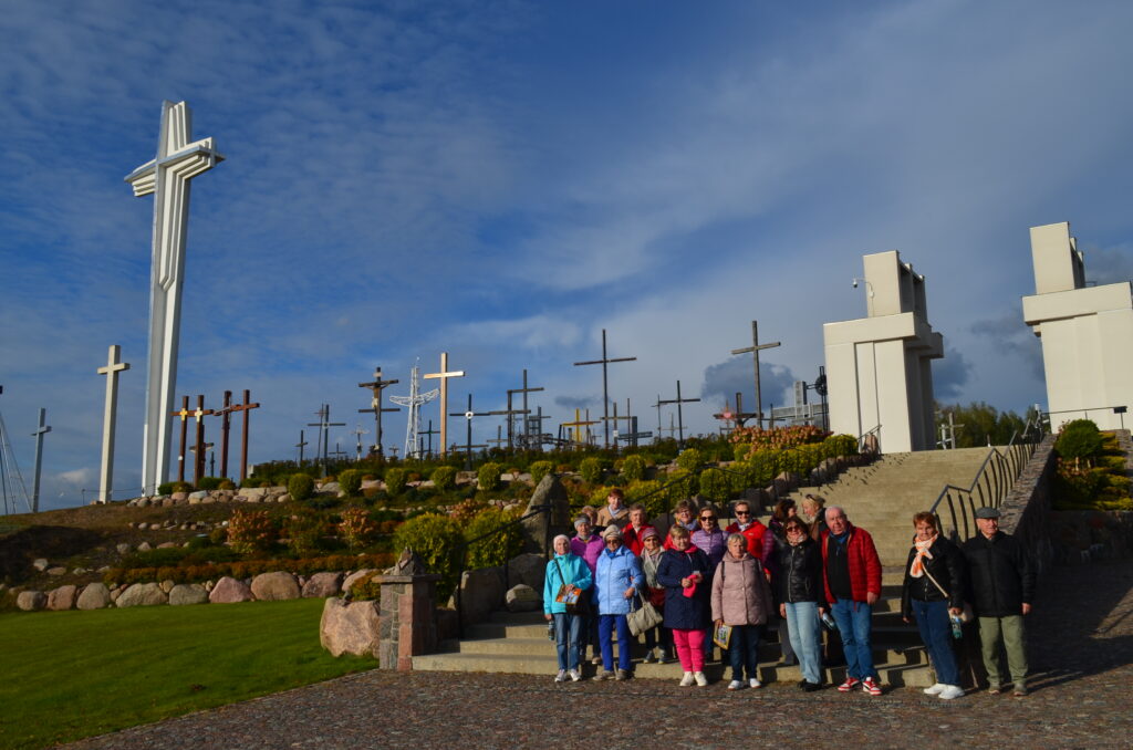 Dnia 2 października w ramach projektu „Co słychać u naszych sąsiadów” uczestniczyliśmy w wycieczce po naszym Podlasiu. Zaczęliśmy od Kopnej Góry, gdzie w 2023 r. w pobliżu Arboretum została otwarta zagroda pokazowa żubrów z infrastrukturą turystyczną (strefy piknikowe, ścieżki edukacyjne, izba edukacyjna i parkingi). Następnie odwiedziliśmy wieś Bohoniki. Zamieszkiwana ona jest przez mniejszość tatarską z nadania dóbr ziemskich przez króla Jana III Sobieskiego. We wsi znajduje się meczet oraz mizar – cmentarz muzułmański (objęte ochroną konserwatorską). W Bohonikach zjedliśmy specjały tatarskie: kołduny w rosole i pieróg z mięsem. Byliśmy w Sokółce, gdzie w kościele pw. św. Antoniego Padewskiego był cud eucharystyczny, który wydarzył się 12.X.2008 r. Obejrzeliśmy prawosławną cerkiew pw. św. Aleksandra Newskiego. Ostatnią wizytę złożyliśmy w Świętej Wodzie w Wasilkowie. Zespół sanktuaryjny składa się z kościoła (kaplica), groty, wzgórza krzyży, cudownego źródełka, ołtarza polowego oraz kaplic Dróżek Siedmiu Boleści Matki Bożej, rozmieszczonych na Błoniach Jana Pawła II.