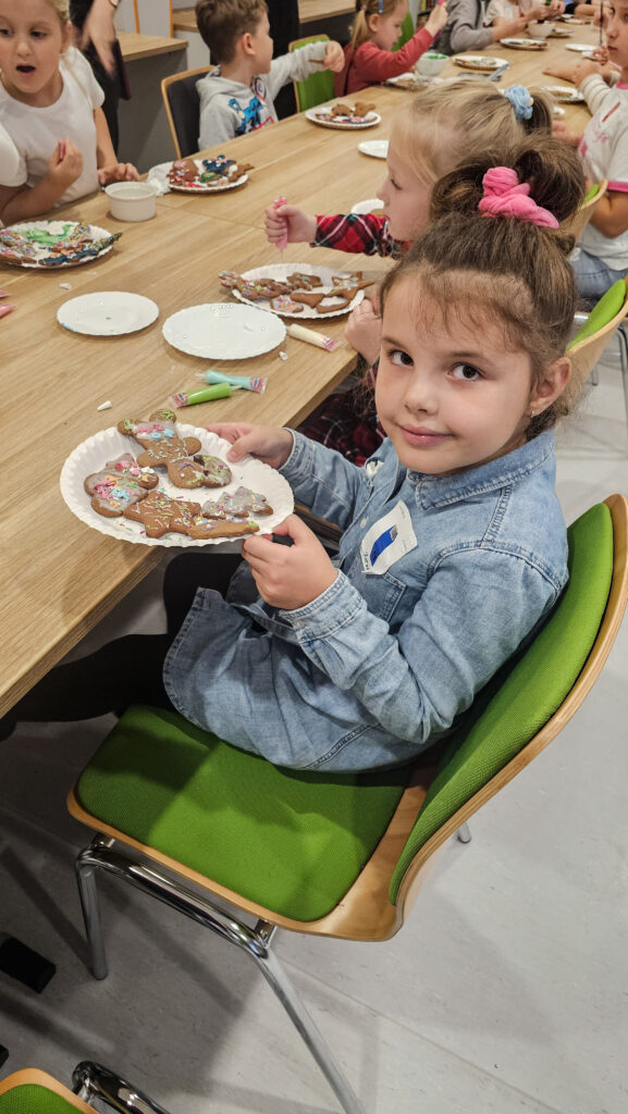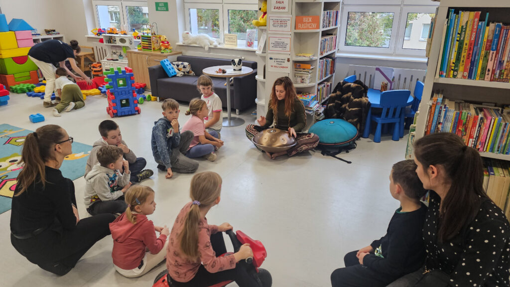 Równolegle w Oddziale dla Dzieci odbyły się „Jesienne warsztaty kreatywne”. Najmłodsi dekorowali pierniki, robili magiczne lampiony oraz uczestniczyli w specjalnie przygotowanych dla nich grach i zabawach. W niepowtarzalny klimat wprowadziła wszystkich obecnych Kaja Grzelak, grając na handpanie. Dźwięki tego niezwykłego instrumentu zachwyciły zarówno dzieci, jak i dorosłych.