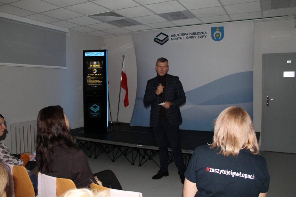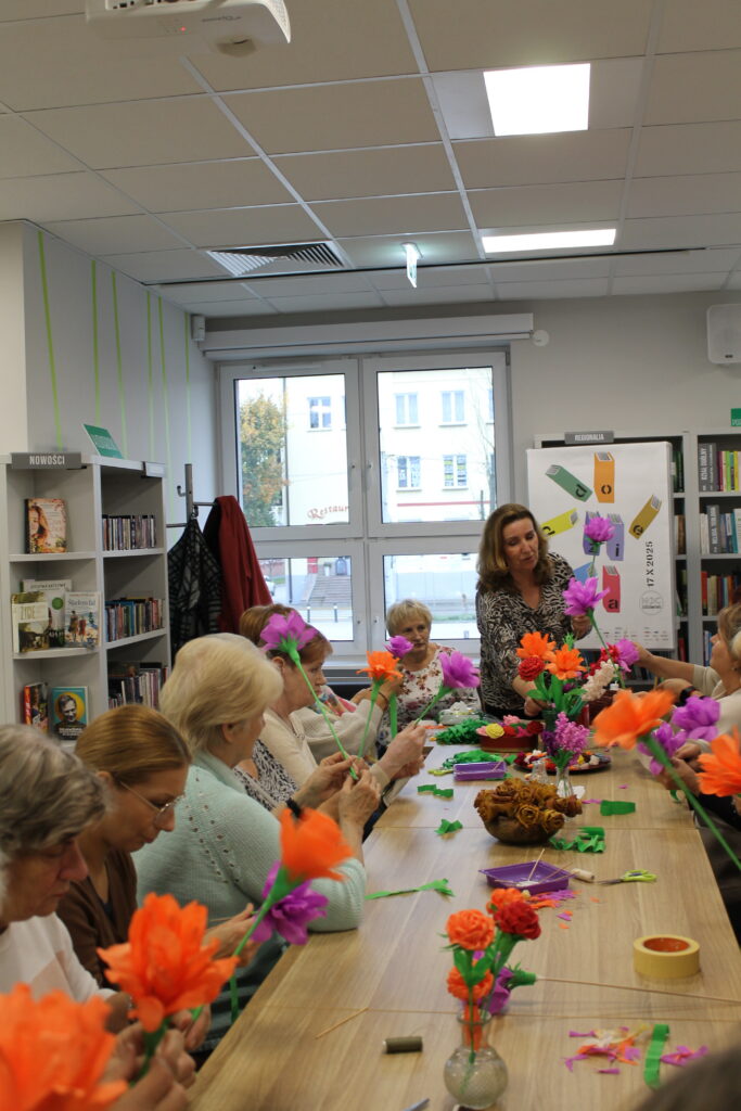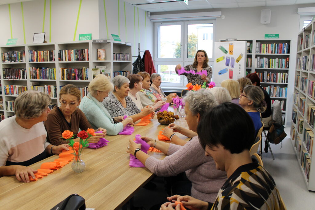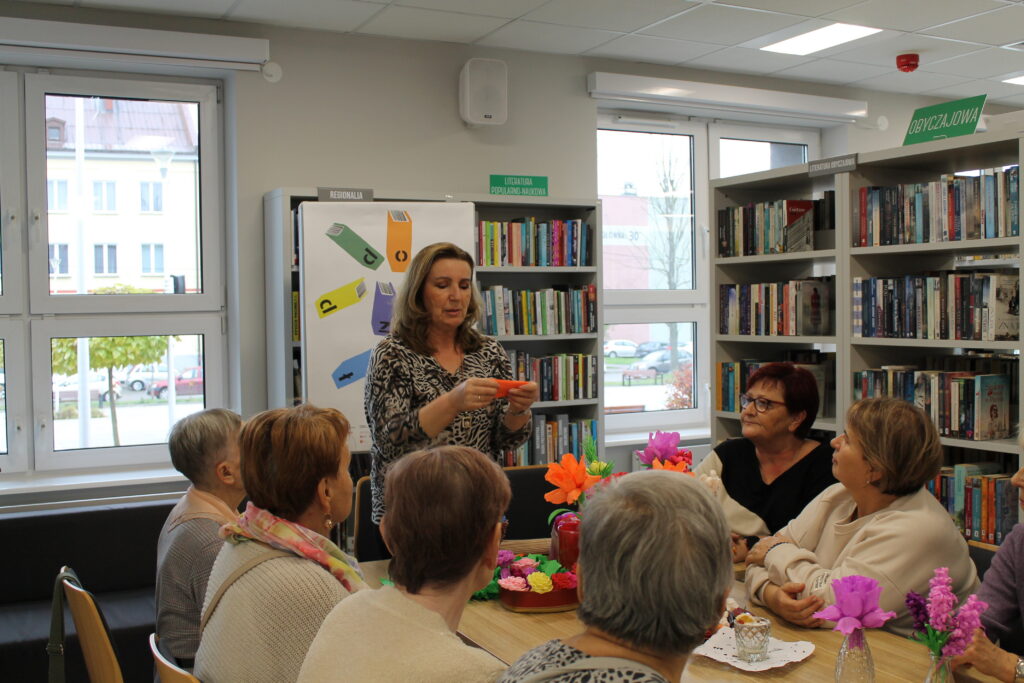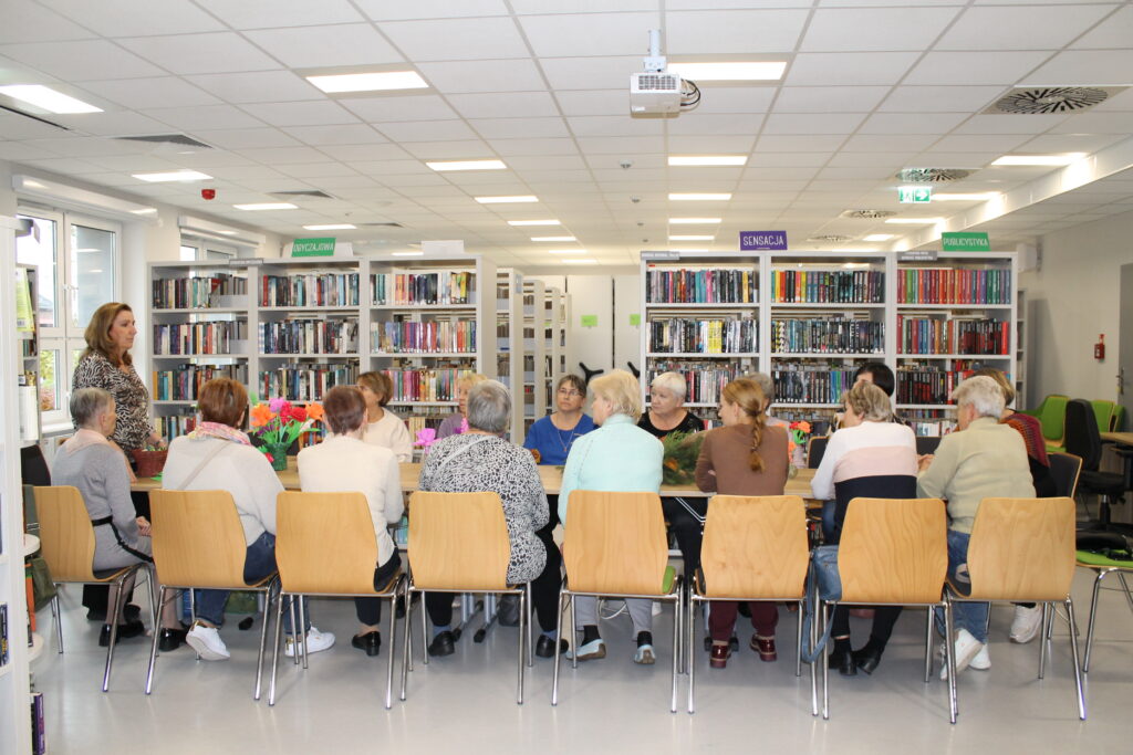 Na zakończenie wieczoru odbyło się spotkanie pt. „Biblioteczny relaks – spacer zmysłów i wyobraźni”, które poprowadziła pani Magdalena Skrouba z MS Studio Fizjoterapii. Uczestnicy mieli okazję zatrzymać się na chwilę, wsłuchać w siebie i przenieść w świat wyciszenia i refleksji.