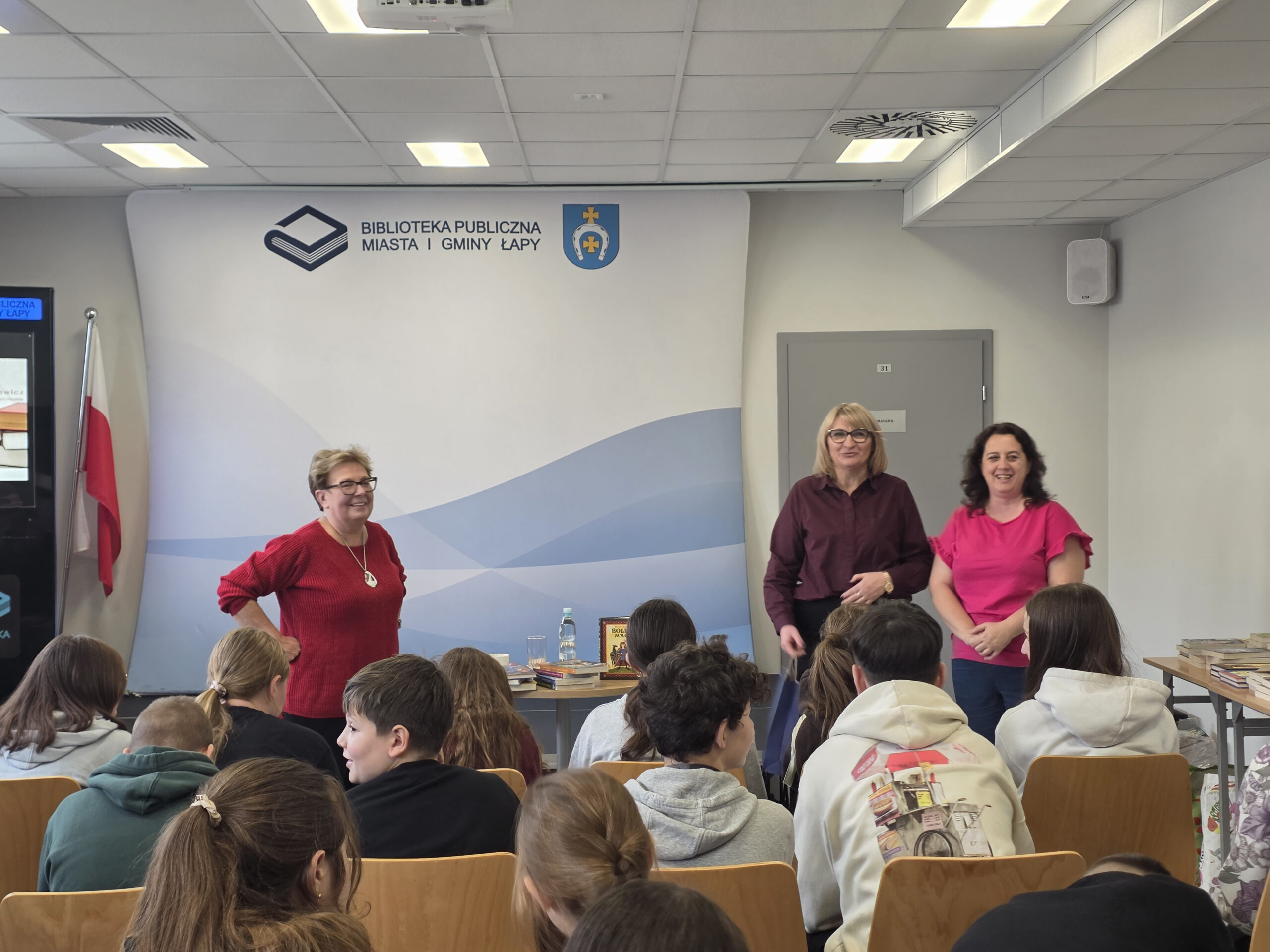 27 października 2025 r. uczniowie dwóch klas szóstych ze Szkoły Podstawowej nr 1 w Łapach im. Jana Pawła II uczestniczyli w niezwykłym wydarzeniu, w spotkaniu z Grażyną Bąkiewicz, pisarką, historyczką i autorką popularnej serii „Ale historia…”