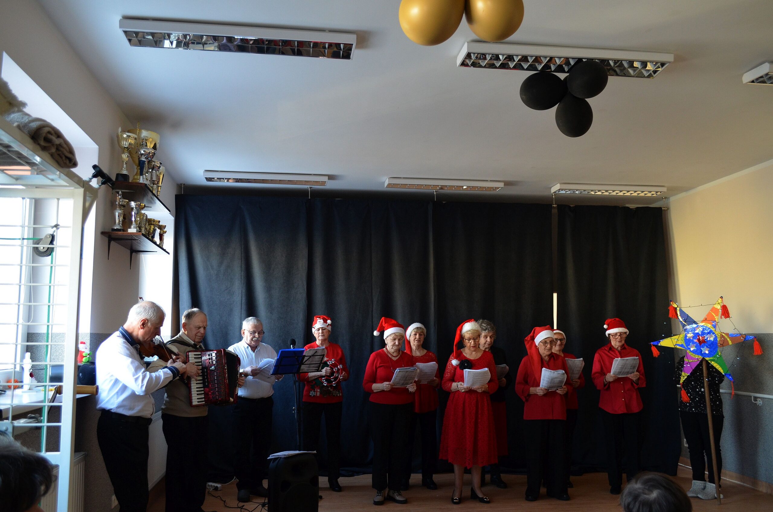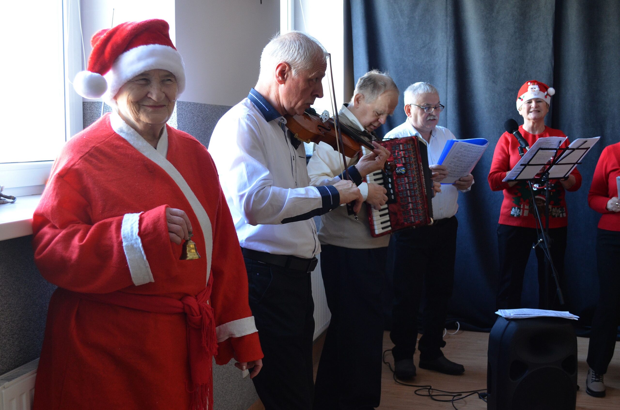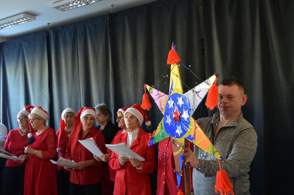 Słuchacze Uniwersytetu Trzeciego Wieku z radością wzięli udział w gościnnym występie kolędniczym w Środowiskowym Domu Samopomocy w Łapach, dzieląc się muzyką i świątecznym nastrojem.
