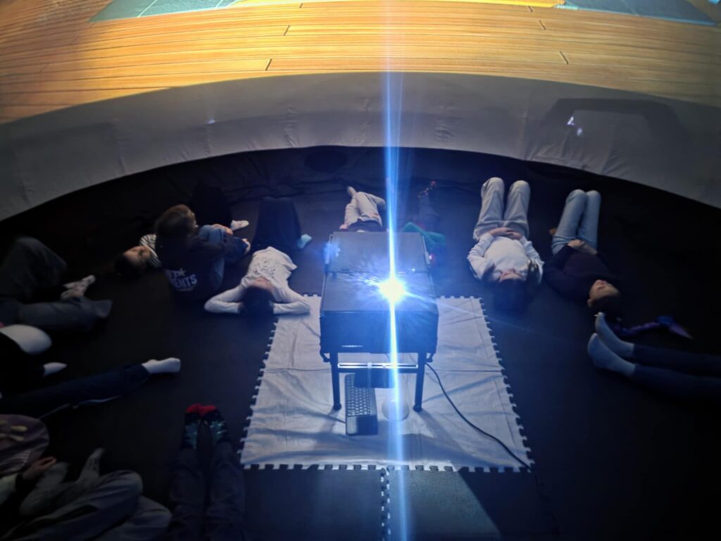 Atrakcją dzisiejszego dnia było kino sferyczne, które wzbudziło ogromne zainteresowanie wśród dzieci. Uczestnicy z zaciekawieniem obejrzeli bajkę pt. „Dinozaury. Historia przetrwania”, która okazała się niezwykle ciekawym i angażującym doświadczeniem 🎬🦖