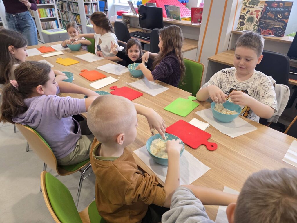 Dzisiaj było jak zawsze twórczo i bardzo kreatywnie. W pierwszej części zajęć dzieci własnoręcznie przygotowywały masę solną, a następnie przy pomocy foremek wycinały z niej różnorodne kształty. Nie brakowało pomysłów, śmiechu i małych dzieł sztuki