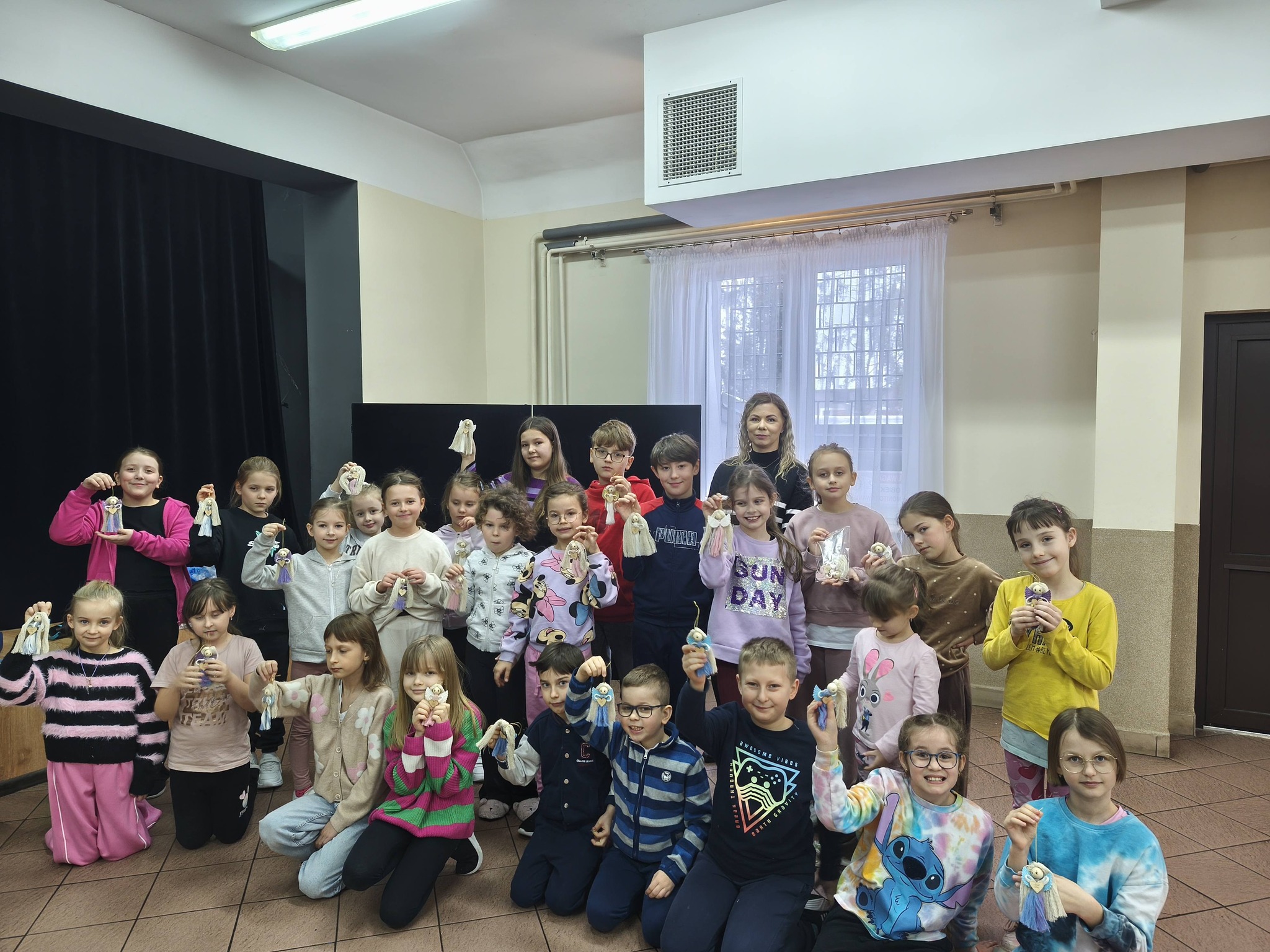 Pierwszego dnia gościliśmy Panią Katarzynę Łapińską ze Zdolne ŁAPki – handmade, dzięki której uczestnicy zajęć stworzyli śliczne aniołki ze sznurków metodą makramy. Później bawiliśmy się ruchowo i muzycznie, wprowadzając wszystkich w świetny nastrój.