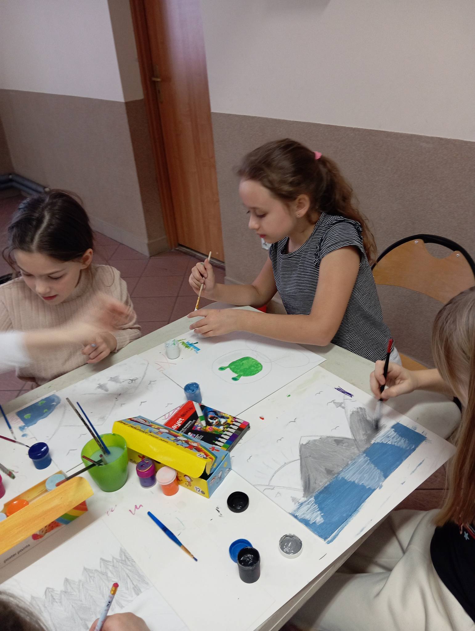 Trzeci dzień zajęć feryjnych spędziliśmy najpierw w kinie na seansie filmowym w Domu Kultury w Łapach, a następnie wróciliśmy do Uhowa, gdzie dzieci z zaangażowaniem ozdabiały maski oraz tworzyły zimowe krajobrazy na płótnie.