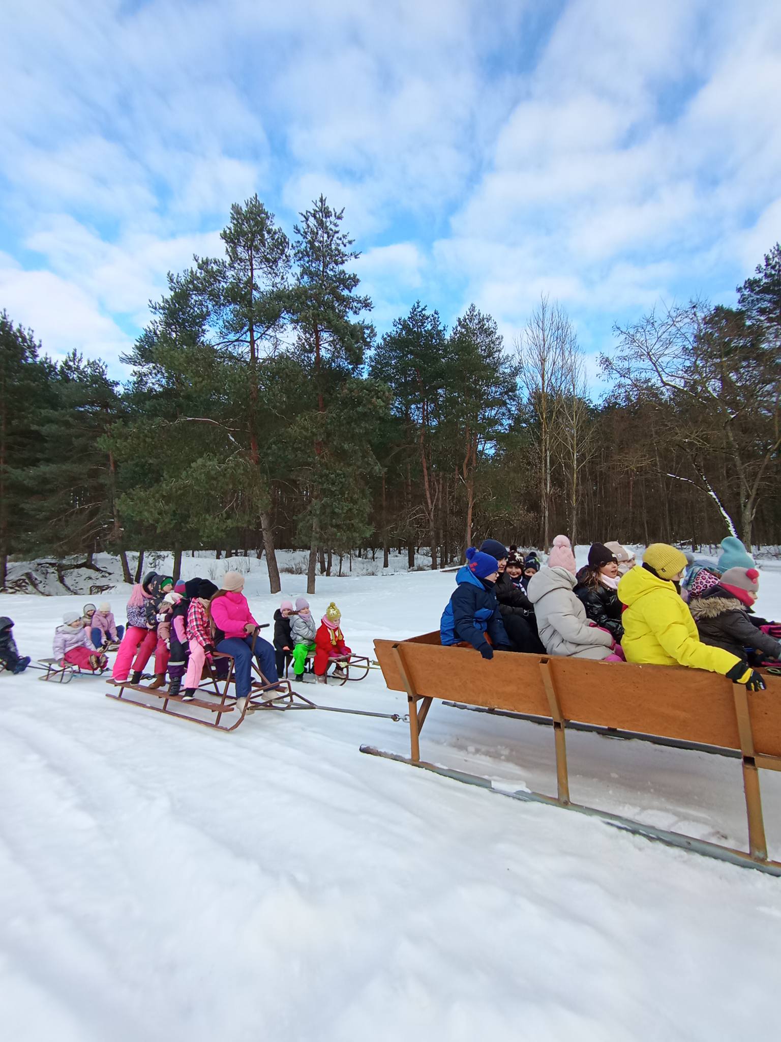 Ostatni dzień ferii rozpoczęliśmy od zabaw ruchowych, m.in. z pomponami, a następnie udaliśmy się na kulig i ognisko pod wieżę widokową w Uhowie, co było pięknym zwieńczeniem całego tygodnia. W organizacji tego wydarzenia wsparli nas strażacy z OSP Uhowo, Pan Sołtys Marek Gołko oraz rodzice dzieci – za co serdecznie dziękujemy.