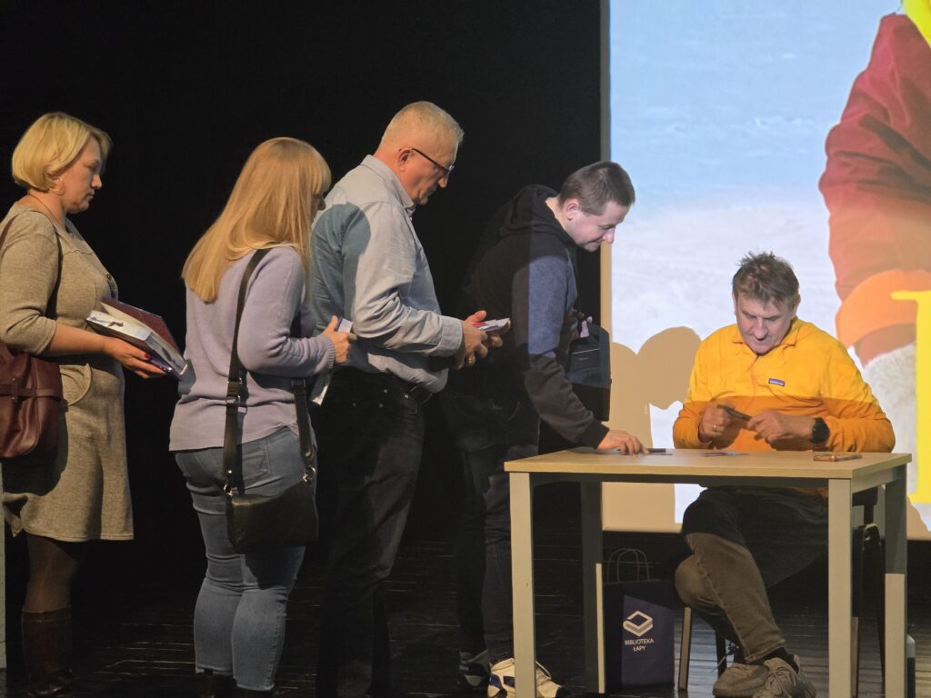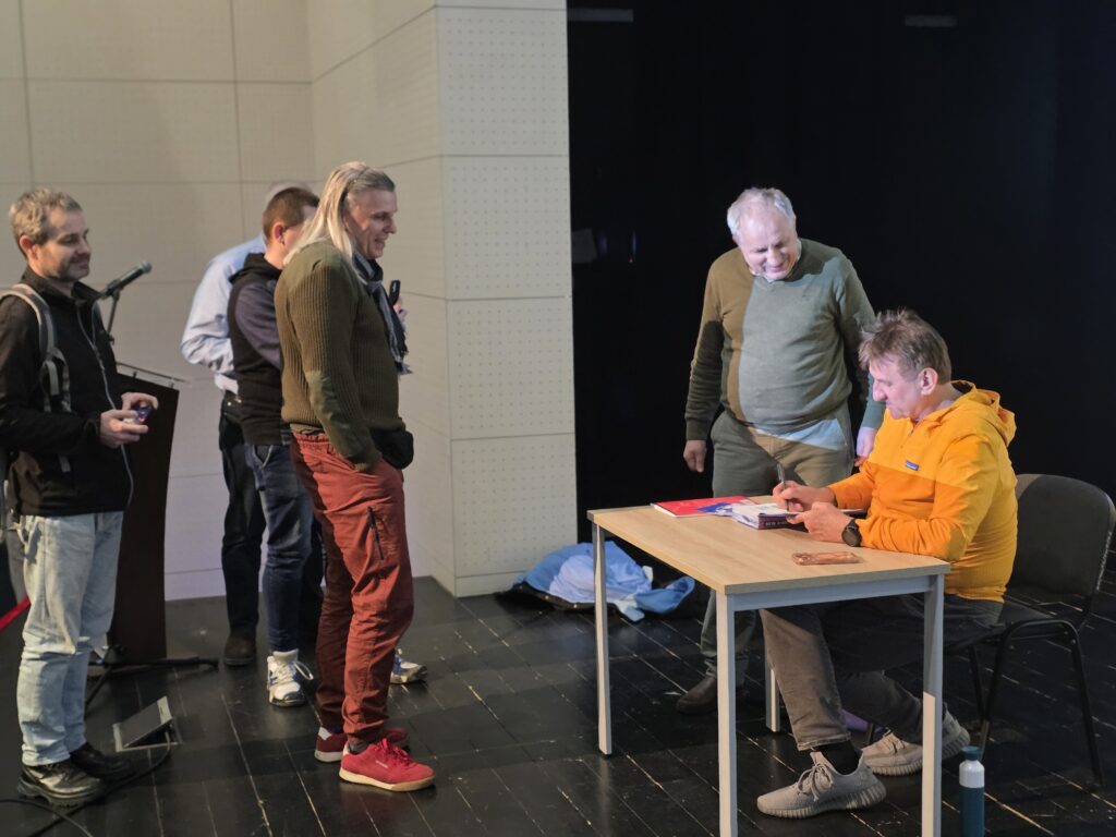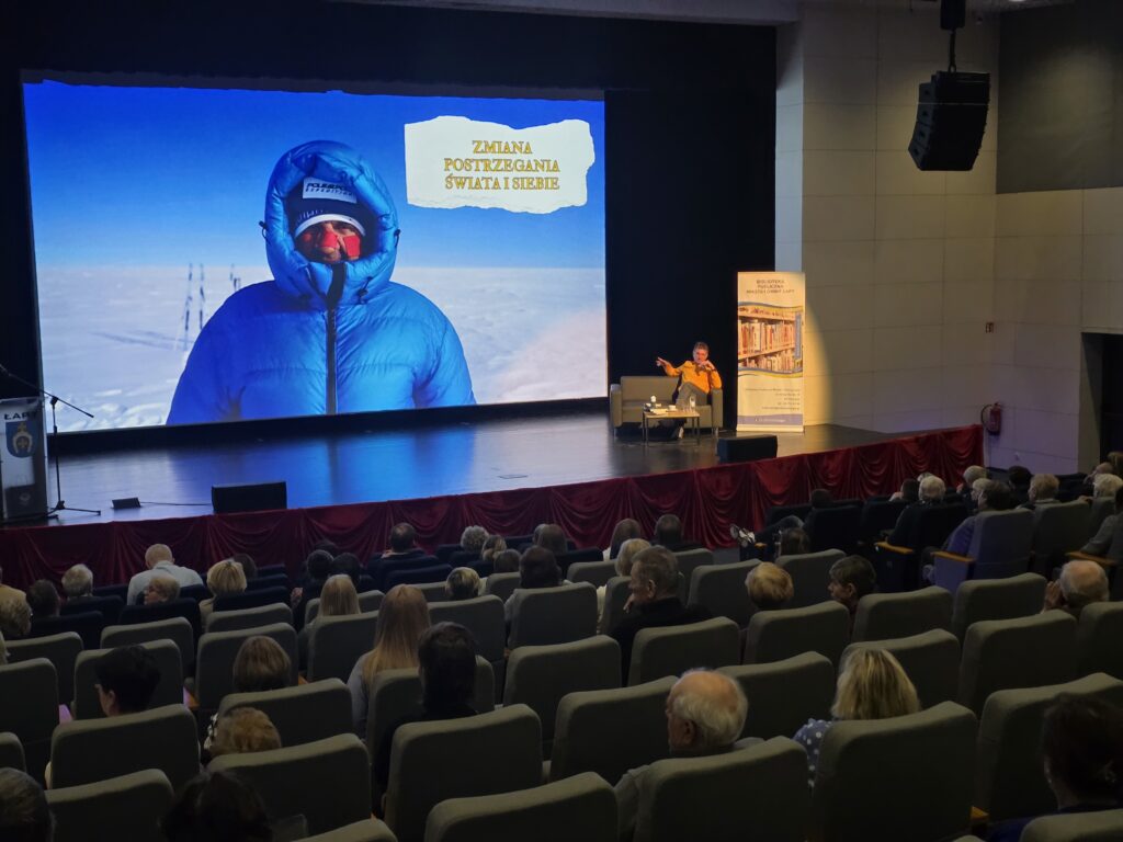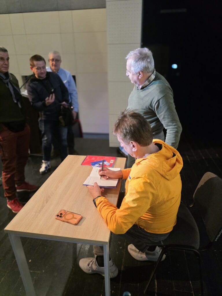 Publiczność miała możliwość zadawania pytań. Dotyczyły one zarówno przygotowań do wypraw polarnych, jak i źródeł motywacji do podejmowania kolejnych wyzwań oraz sposobów radzenia sobie z trudnościami. Odpowiedzi Pana Marka były wyważone, rzeczowe i oparte na bogatym doświadczeniu. Po zakończeniu spotkania uczestnicy mogli uzyskać autograf autora oraz odbyć krótką rozmowę z naszym gościem.