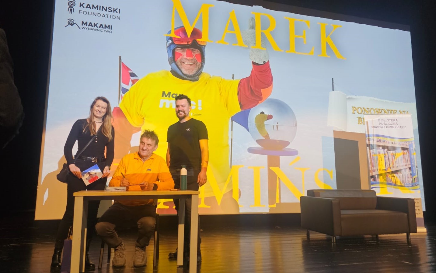 16 lutego odbyło się spotkanie autorskie z Markiem Kamińskim, wybitnym podróżnikiem, polarnikiem i pisarzem, którego życie stanowi świadectwo determinacji oraz konsekwentnego przekraczania granic ludzkich możliwości. Organizatorem wydarzenia była Biblioteka Publiczna Miasta i Gminy Łapy, jednak ze względu na bardzo duże zainteresowanie czytelników spotkanie zostało przeniesione do sali widowiskowej Domu Kultury.