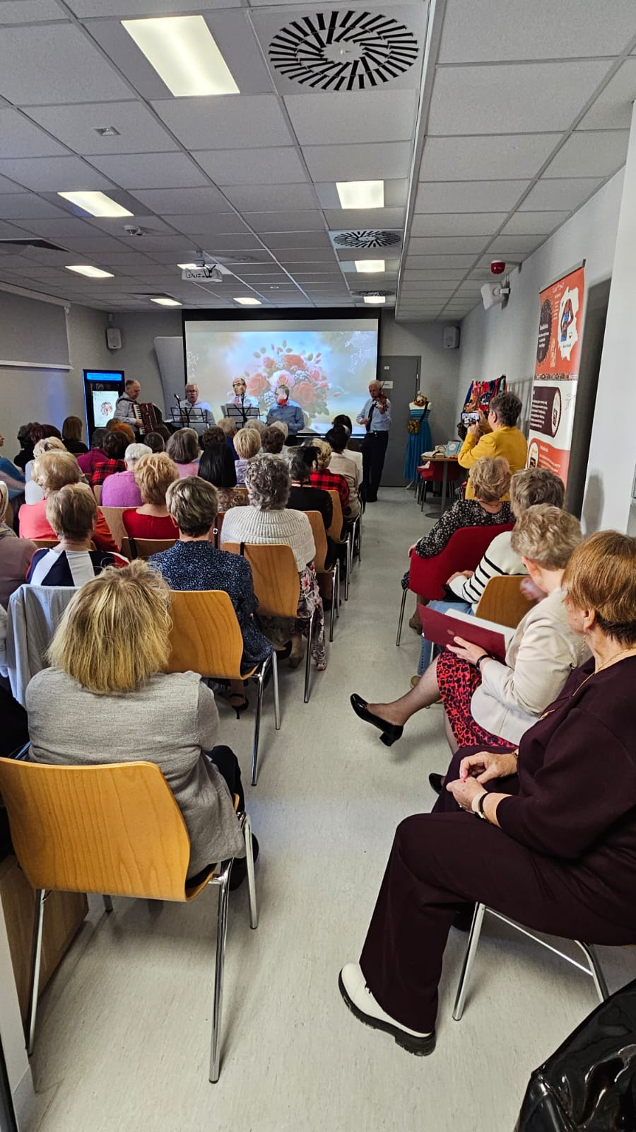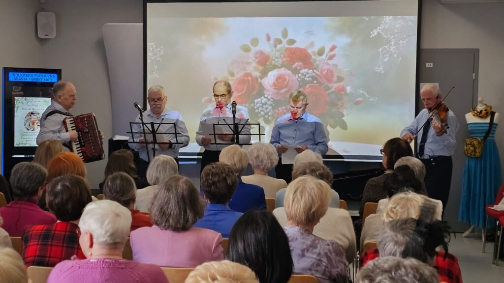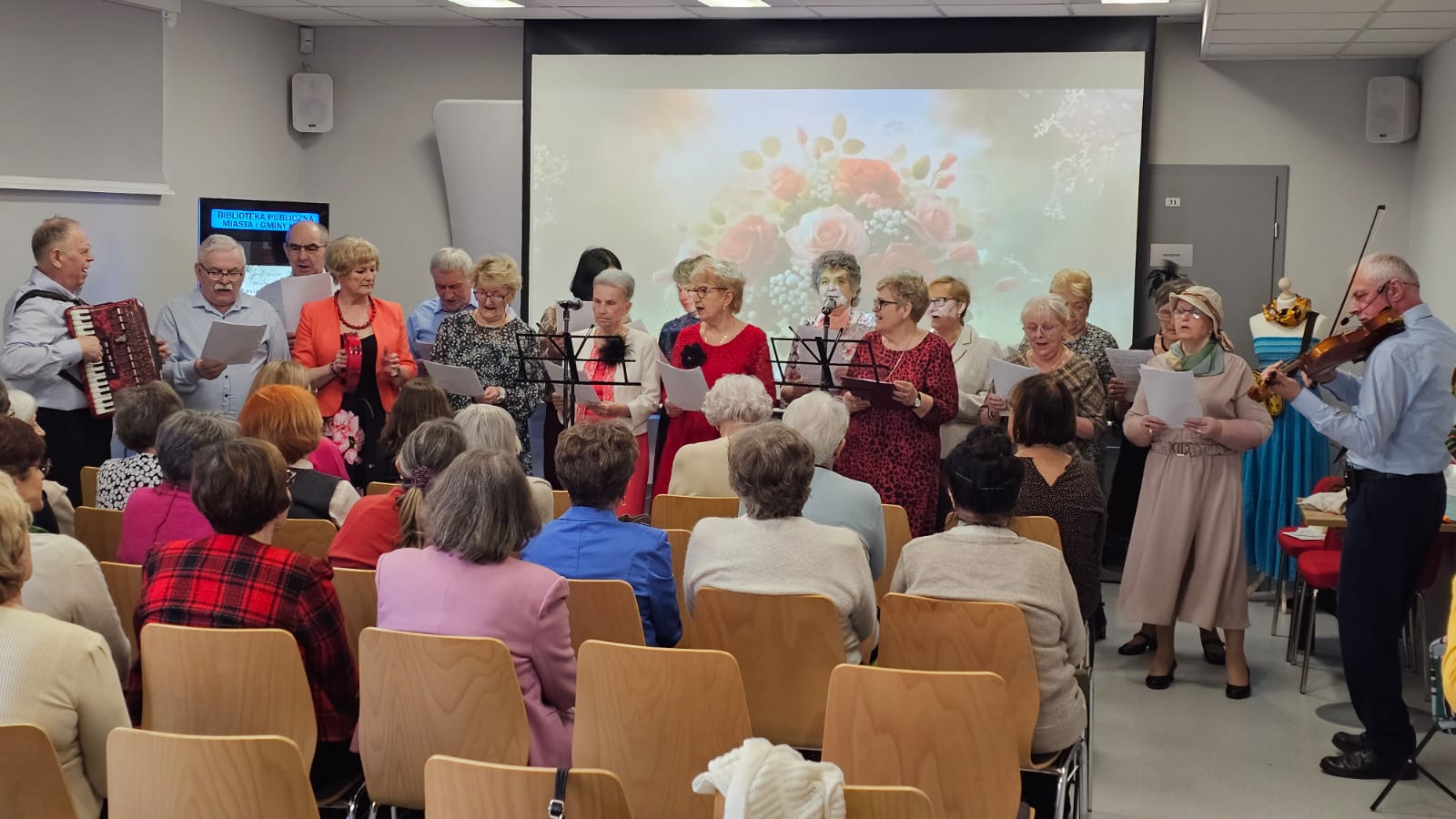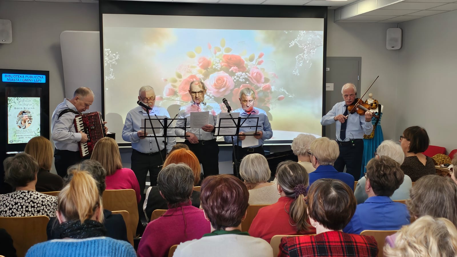 Uczestnicy wysłuchali występu członków sekcji muzycznej UTW, którzy przygotowali specjalny program dla pań. Był śpiew i muzyka na żywo, przeplatane zabawnymi anegdotami i żartami, co wprowadziło radosną i swobodną atmosferę.