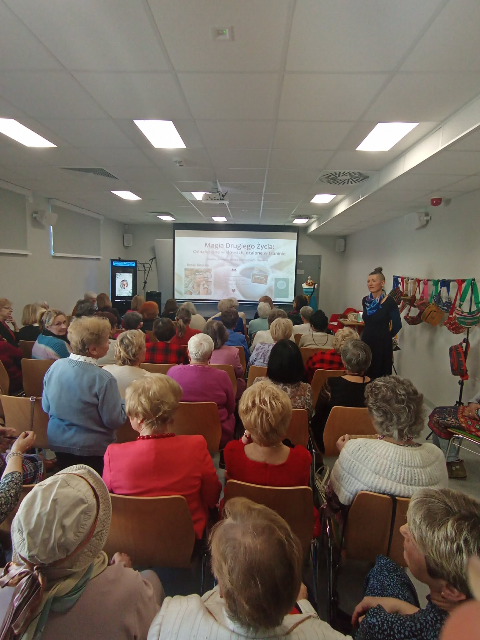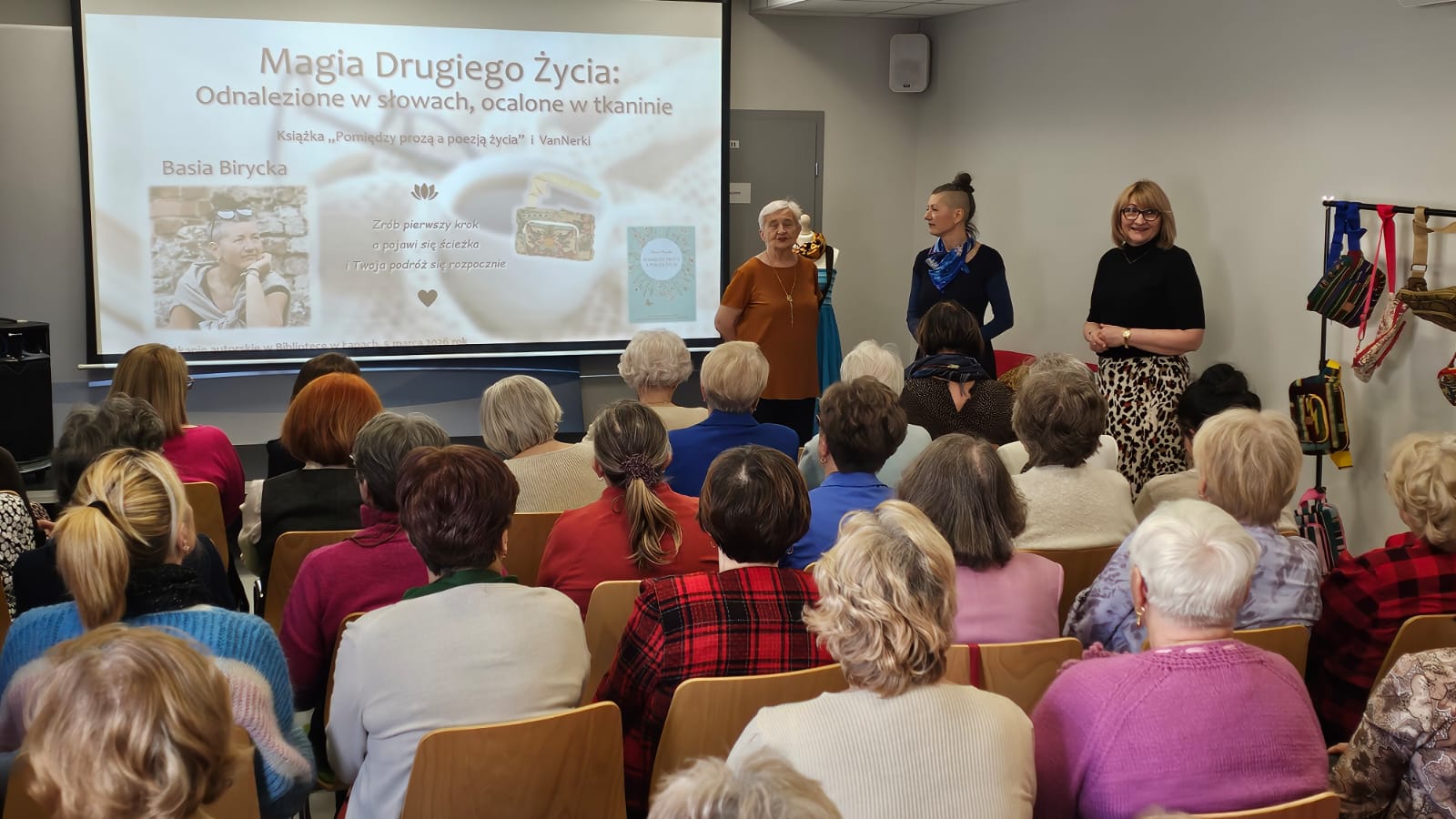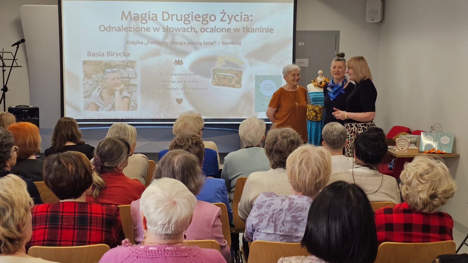Pierwszym punktem programu było spotkanie autorskie z Basią Birycką pt. „Magia Drugiego Życia: Jak szycie z odzysku zmieniło babcine kapy w VanNerki”. Była to opowieść o dawaniu przedmiotom drugiej szansy, kreatywności i pasji do rękodzieła. Historia ta pięknie splatała się z refleksjami zawartymi w książce autorki „Pomiędzy prozą a poezją życia”, pokazując, jak ważne w codzienności są wrażliwość, wspomnienia i twórcze podejście do życia.
