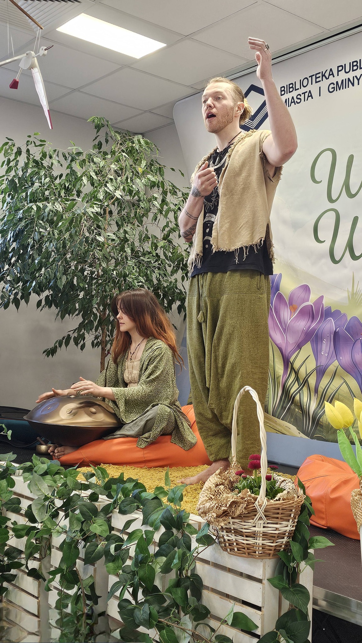 Tym razem poznaliśmy baśń „Mądra Wasilisa” o odwadze i sile dobra. Niezwykłą historię opowiedział nam Michał Kopczewski, a o nastrojową oprawę muzyczną zadbała Kaja Grzelka, tworząc wyjątkowy klimat dzięki grze na handpanie.