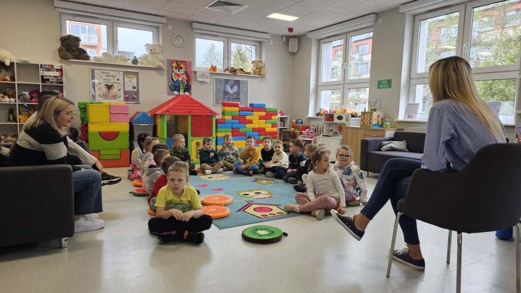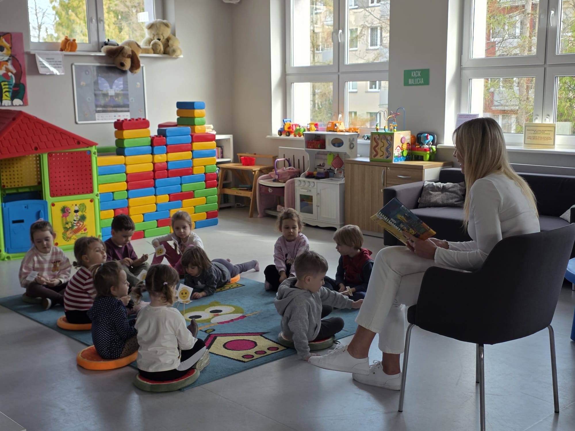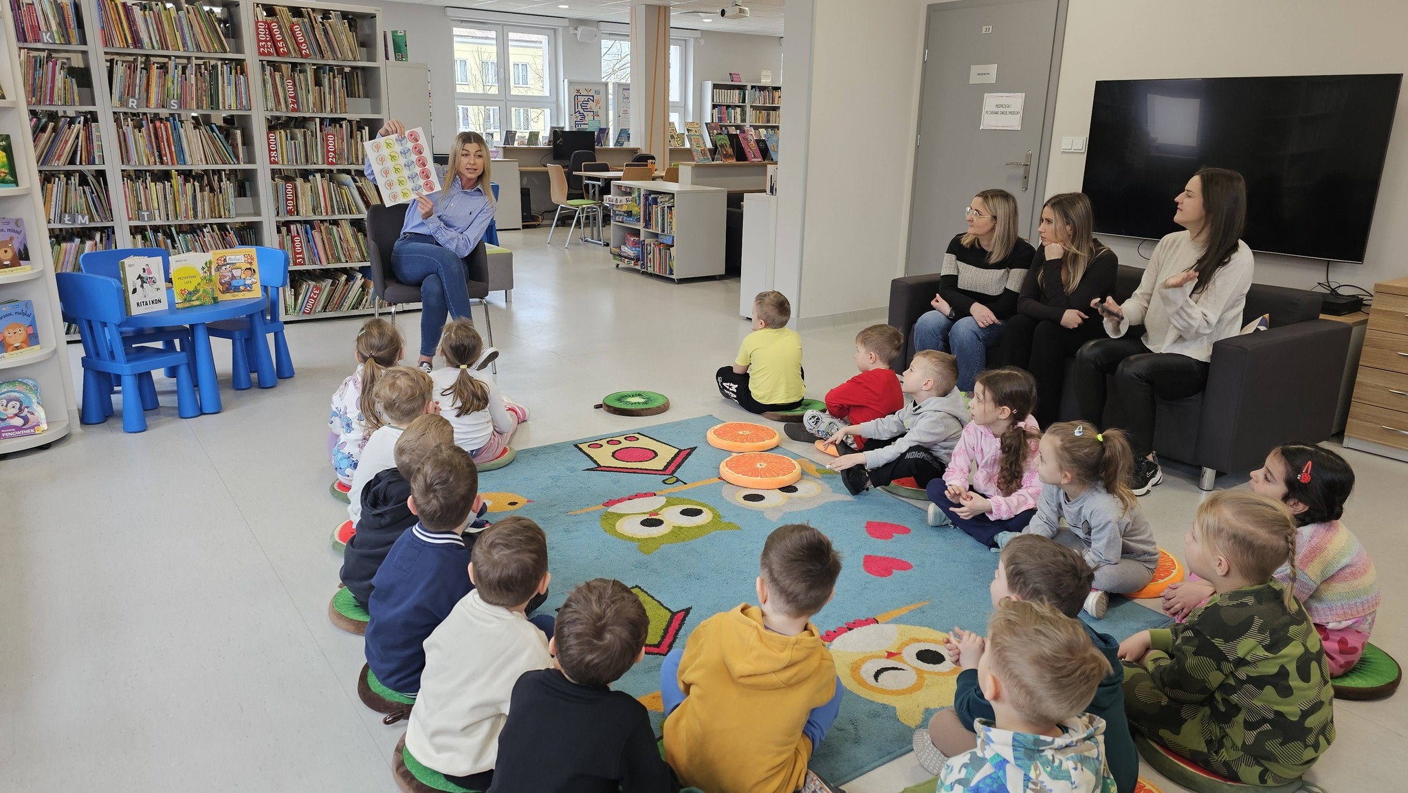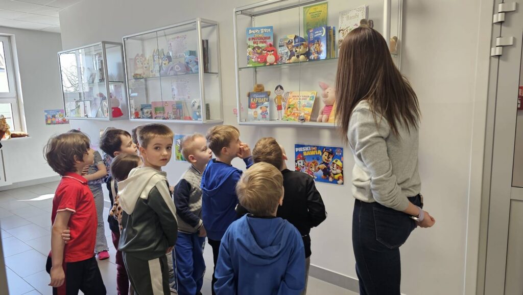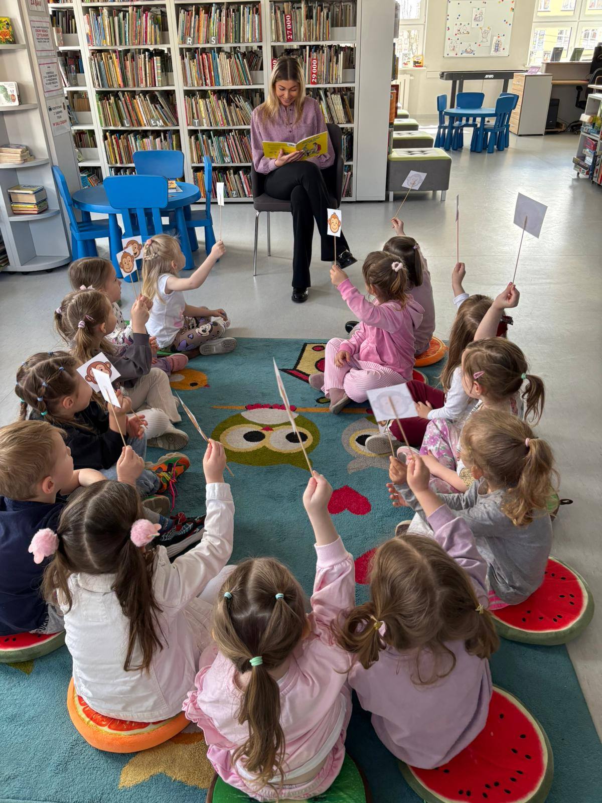 W tym tygodniu nasza biblioteka miała przyjemność gościć wyjątkowych odwiedzających, dzieci z Katolickiej Szkoły Podstawowej im. Kardynała Stefana Wyszyńskiego. W kolejnych dniach odwiedziły nas grupy 3-, 4-, 5- oraz 6-latków, przynosząc ze sobą mnóstwo radości, ciekawości świata i entuzjazmu Każde spotkanie było okazją do poznania zasad funkcjonowania biblioteki oraz tego, jak należy się w niej zachowywać i dbać o książki. Dzieci z zainteresowaniem oglądały również wystawę przygotowaną z okazji Międzynarodowego Dnia Książki dla Dzieci. Nie zabrakło wspólnego czytania, które stało się punktem wyjścia do rozmów zarówno o ulubionych książkach, jak i o emocjach czy znaczeniu bliskich nam przedmiotów, takich jak ukochane przytulanki. Podczas wizyt przedszkolaki poznały także program „Mała książka – wielki człowiek”, zachęcający najmłodszych do regularnego sięgania po książki i rozwijania czytelniczych pasji. Każde spotkanie kończyło się aktywnościami, na które dzieci zawsze czekają najbardziej, czyli zajęciami plastycznymi, zabawami ruchowymi oraz czasem spędzonym w kąciku zabaw . To był niezwykle intensywny, ale przede wszystkim radosny tydzień. Cieszymy się, że mogliśmy wspólnie spędzić ten czas i już teraz z niecierpliwością czekamy na kolejne odwiedziny.
